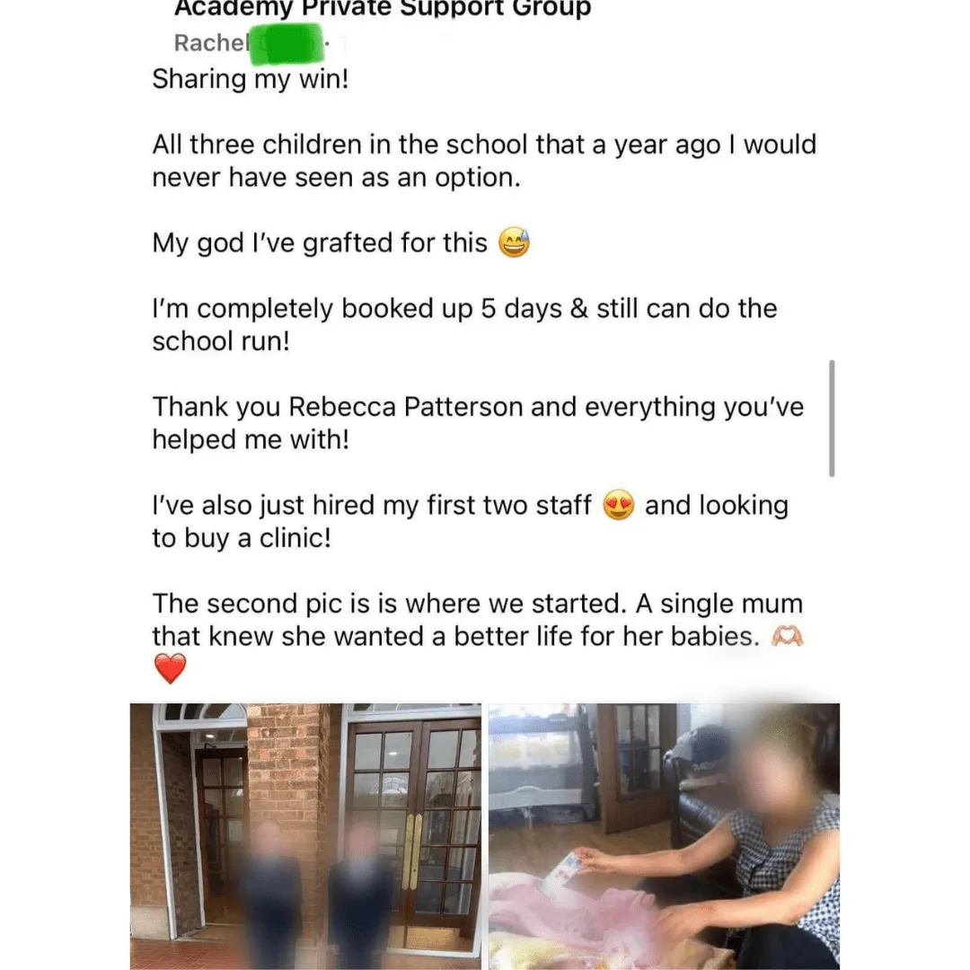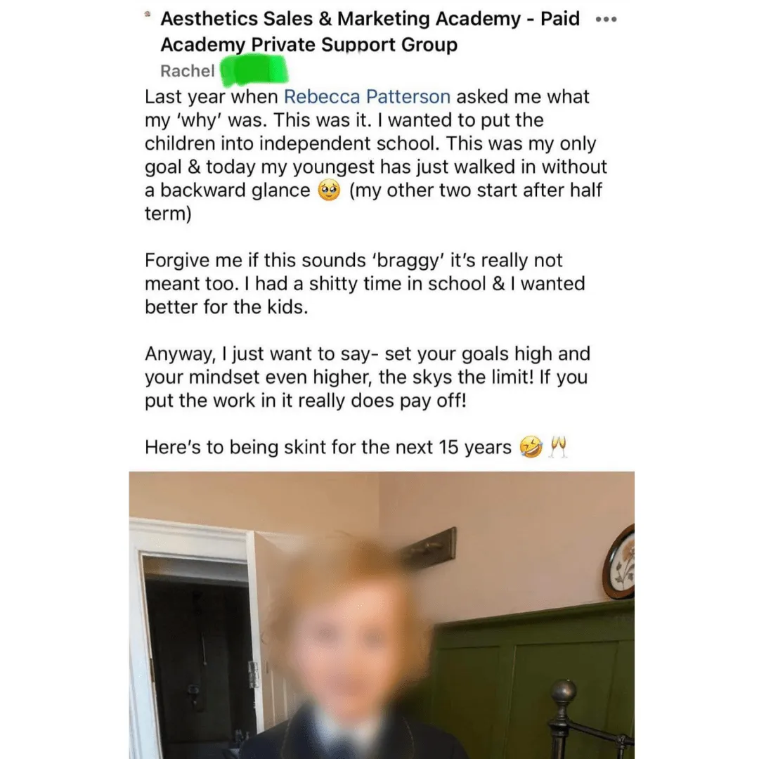 Rebecca Patterson, the founder of the Aesthetic Sales & Marketing Academy and leader of the Clients for Clinic Bootcamp, is a figure of transformation in the world of aesthetic medicine. At the helm of one of Facebook's largest support groups, boasting over 7,000 members, Patterson extends her influence internationally, overseeing her own clinics.